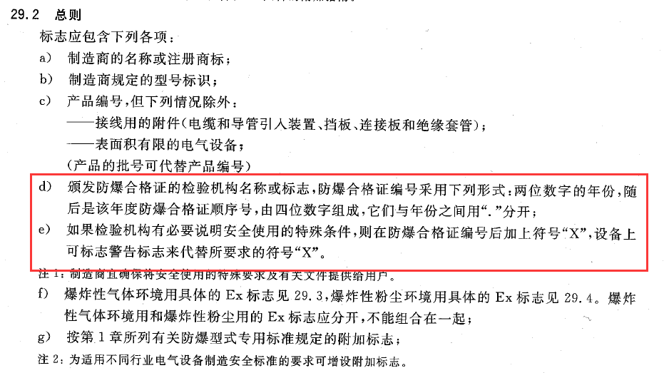 國家防爆標(biāo)準(zhǔn)GB3836.1中的對防爆標(biāo)志也有相應(yīng)的規(guī)定。